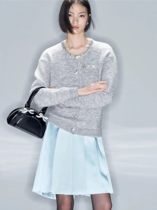 今年的针织开衫,还强调“不好好穿着”,像赵露思这样系在腰间也是不少博主们今年的流行穿法,让穿搭更有层次感不说,还能够在无形中优化身材比例。